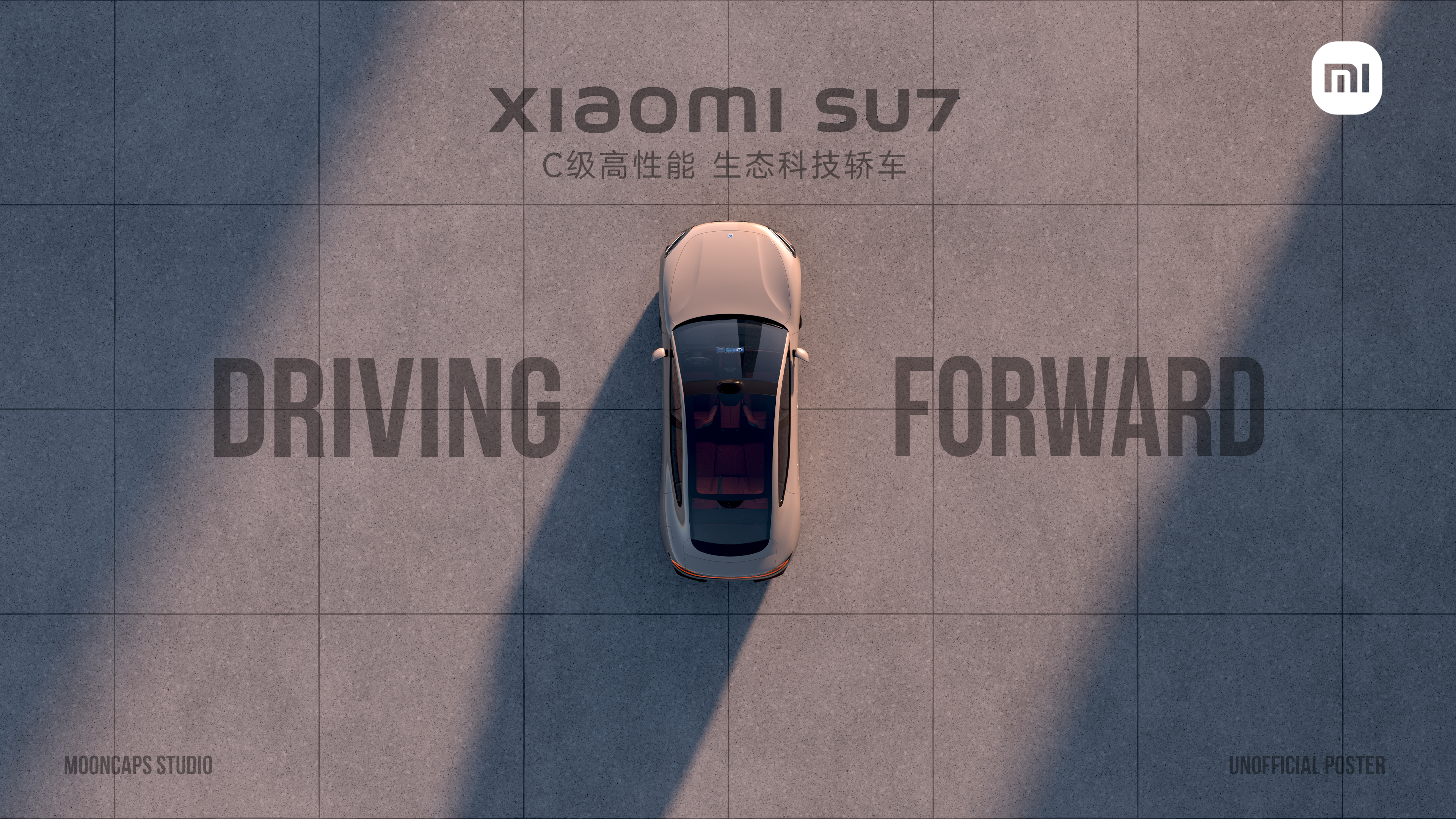 We created this stunning conceptual promotional visual for the Xiaomi SU7, prioritizing a clean, minimalist aesthetic.